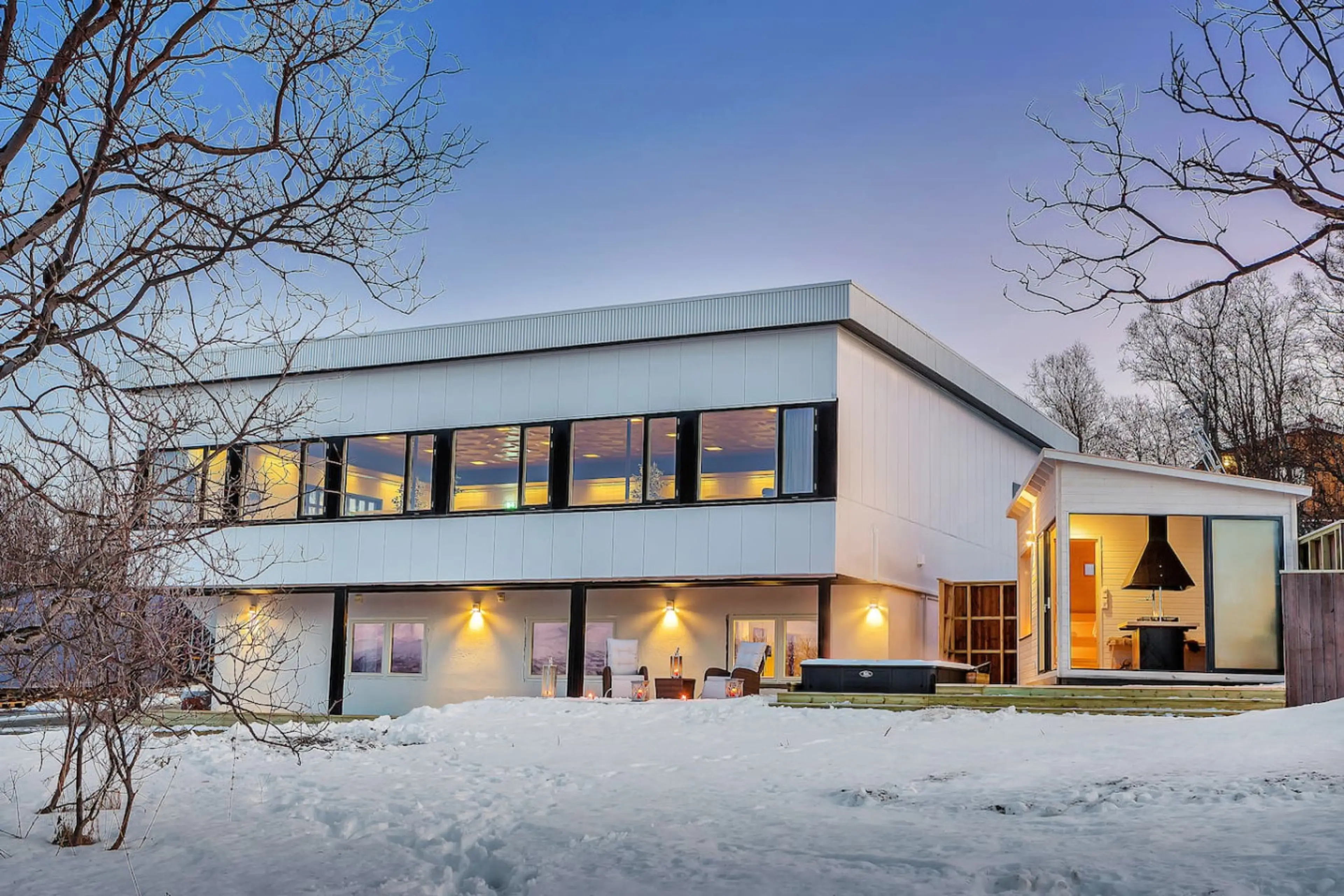 Welcome to this large and luxurious villa in Tromsø! 🖤 With its high standard and fantastic, private location, this is the perfect home for you and your group when visiting Tromsø. Just a few minutes’ walk from the popular aurora viewpoint at Telegrafbukta. You’ll have access to a spacious parki...